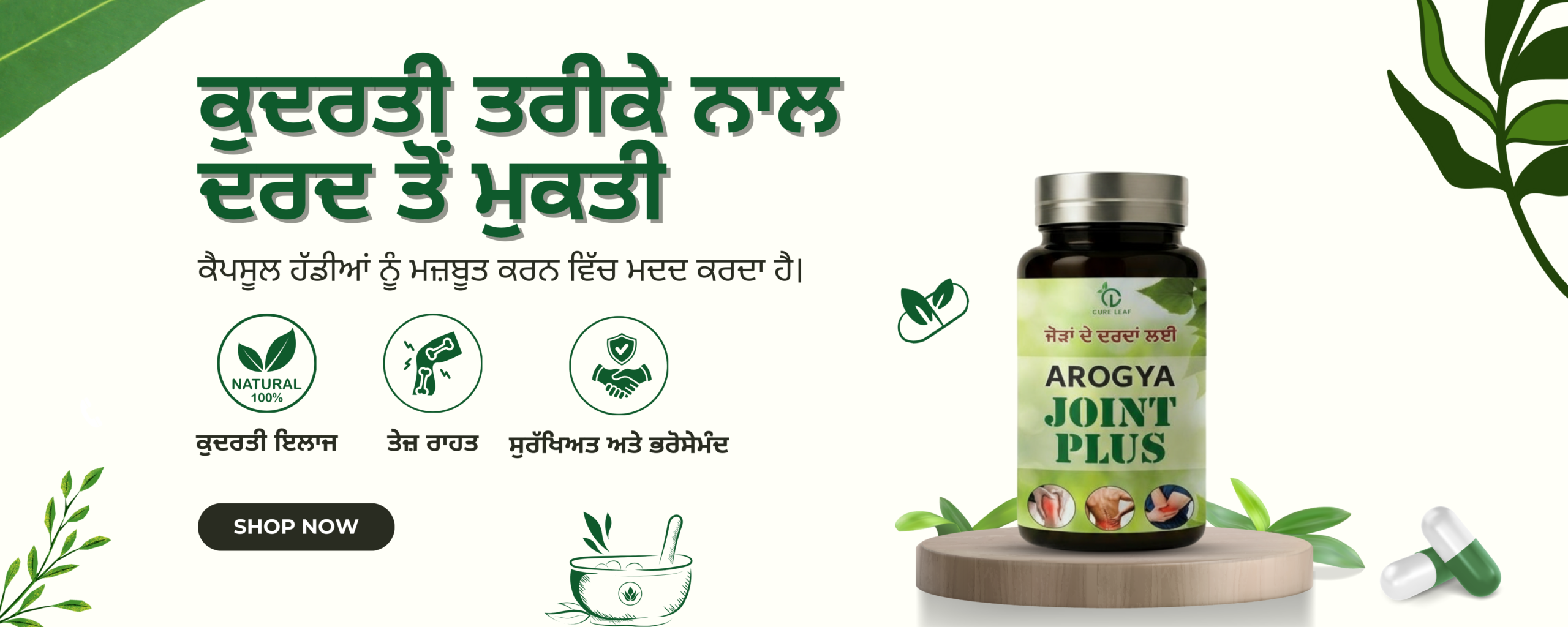 Experience the power of Ayurveda with Cure Leaf Arogya Joint Plus and Pain Plus Oil. Specially crafted to reduce joint pain, muscle stiffness, and inflammation, these natural formulas help you move freely and live comfortably every day.