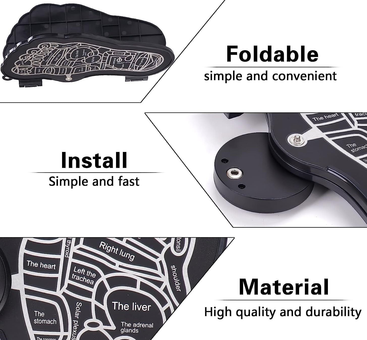 The ergonomic design features a reflexology chart to target specific pressure points connected to different body parts, promoting natural healing and wellness. Whether you spend long hours standing, walking, or sitting, this device helps reduce soreness, stiffness, and stress.